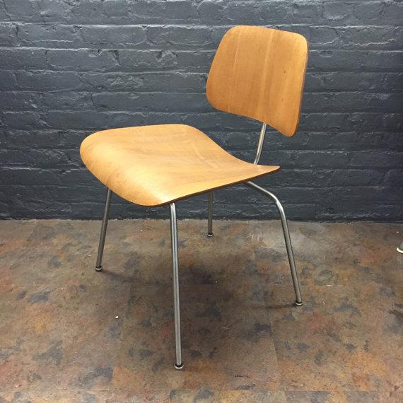 Santos herman miller original eames molded plywood dcm dining chair metal base.